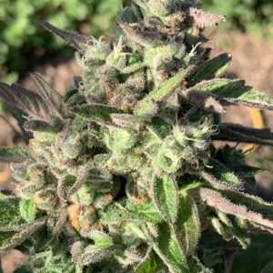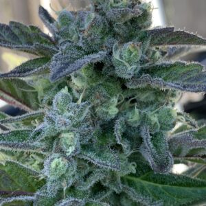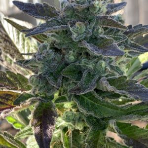 This MeanGene x Masonic mashup has the wildly loud grape and some lime terps from the Grape Ape x Lime Pop from Freeborn Selections. It incorporates the high density trichome coverage of the Wilson and expresses as more sandy/tacky consistency (less oily) which will inherently make it better for washing. Look for THC levels around the low 20% range. The smell of the fresh flowers translates very well to the cured buds.