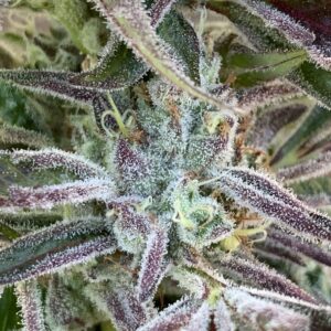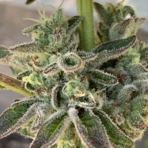 The Whipz (White Runtz x Slapz) combines the trichome production of the grease monkey and layers in very complex mashup of flavors between its parents. Look for different selections that will express a variety of flavors, some with a spicey creamy scent, some hints of kush and diesel, but the resin smells more like creamy bubblegum. Producing copious amount of trichomes that can be seen all over the jar, the Whipz hits on the high side and will incapacitate at large doses.